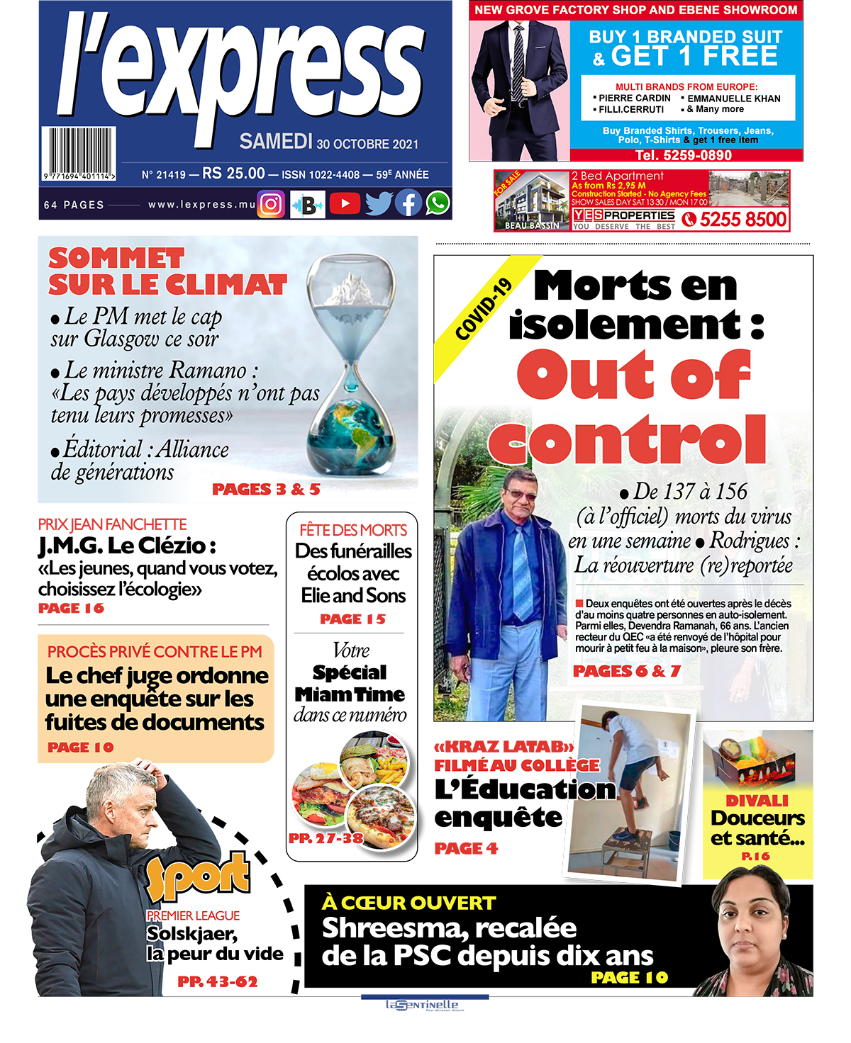 Les grands titres de l'express de ce samedi 30 octobre 2021