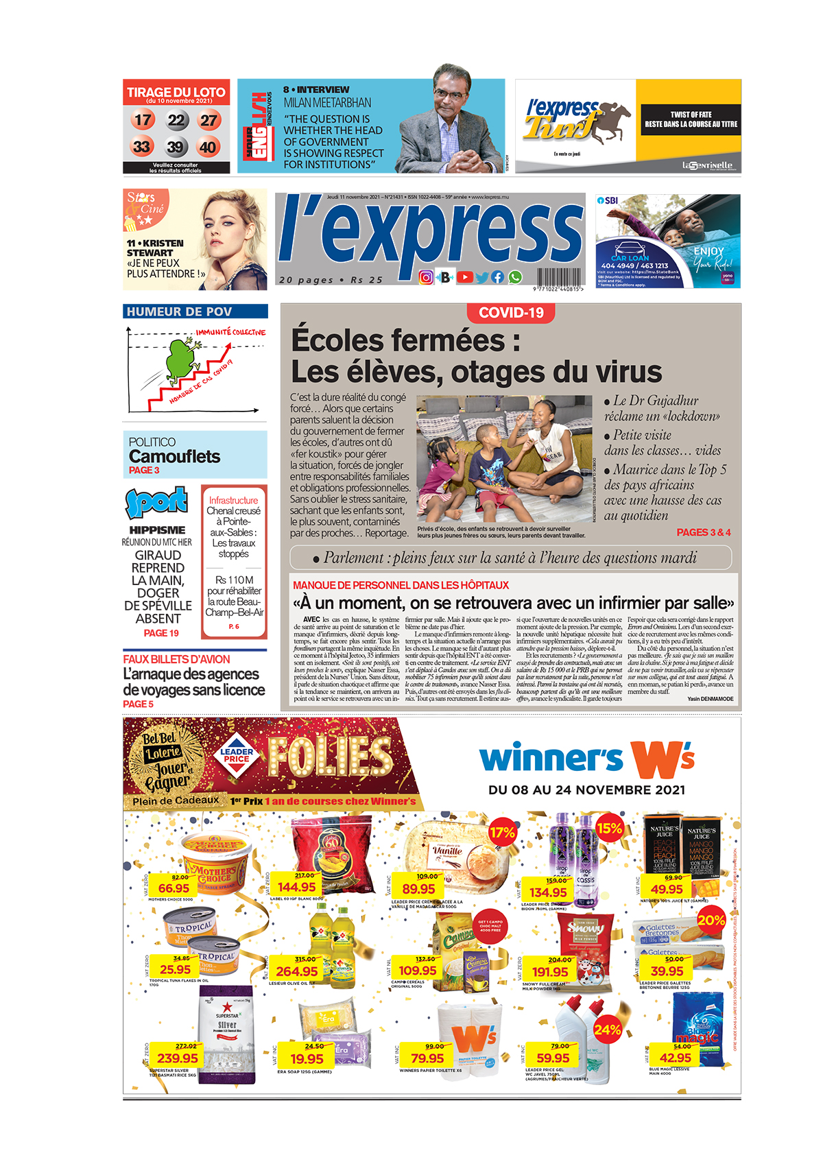 Les grands titres de l'express de ce jeudi 11 novembre 2021