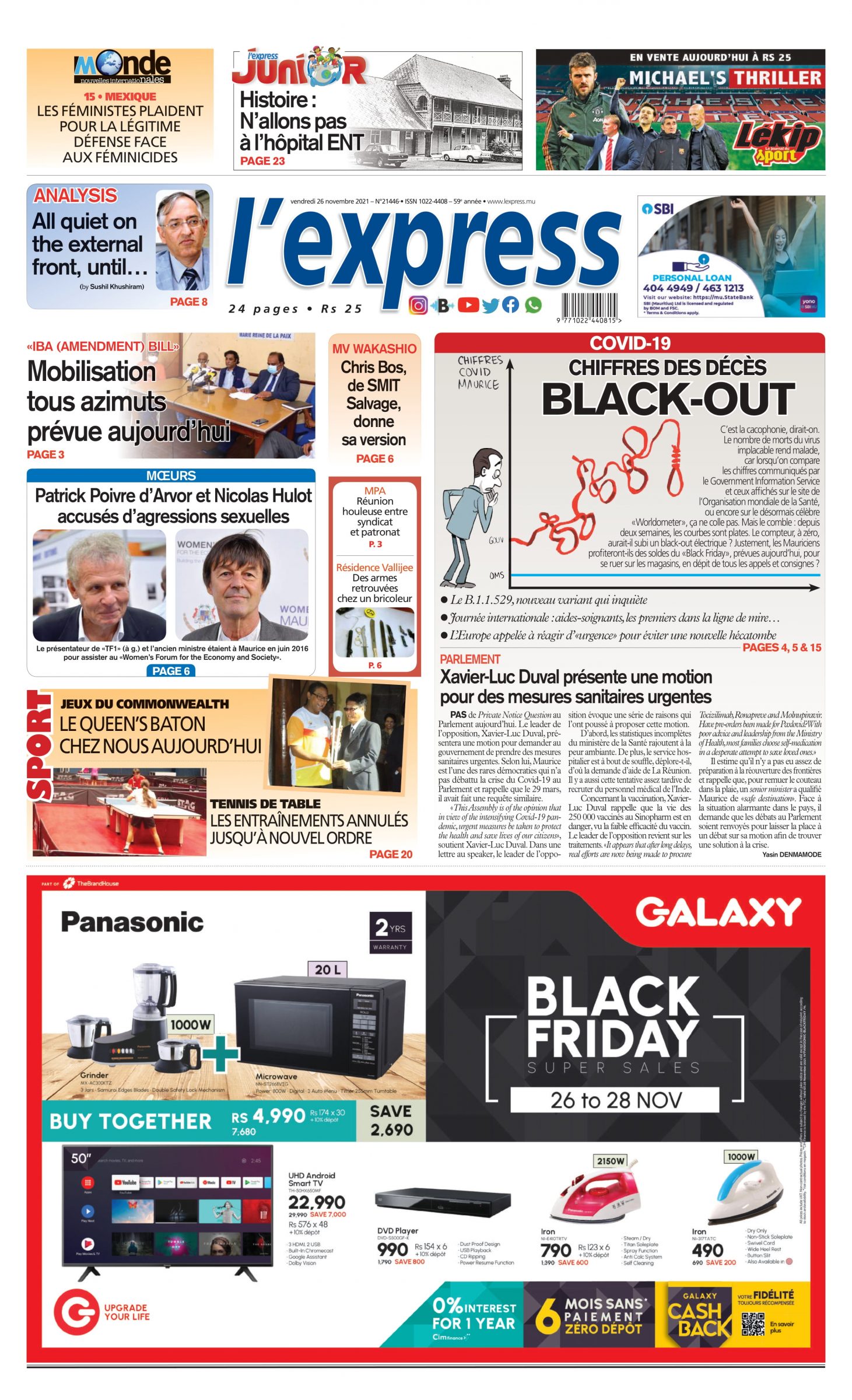 C’est la cacophonie, dirait-on. Le nombre de morts du virus implacable rend malade, car lorsqu’on compare les chiffres communiqués par le Government Information Service et ceux affichés sur le site de l’Organisation mondiale de la Santé, ou encore sur le désormais célèbre «Worldometer», ça ne colle pas. Mais le comble : depuis deux semaines, les courbes sont plates. Le compteur, à zéro, aurait-il subi un black-out électrique ? Justement, les Mauriciens profiteront-ils des soldes du «Black Friday», prévues aujourd’hui, pour se ruer sur les magasins, en dépit de tous les appels et consignes ?