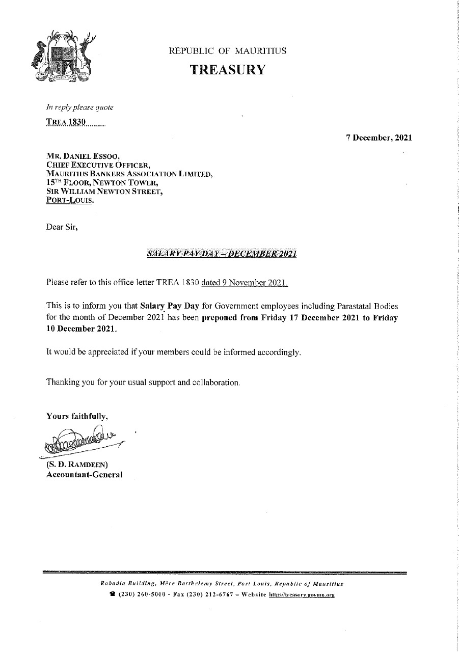 [Document] Paiement des salaires le 10 décembre pour les employés du GM et des corps paraétatiques