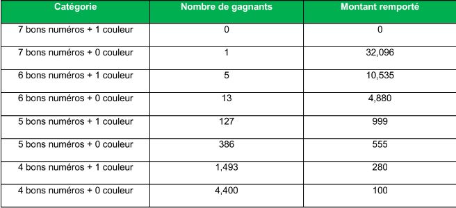 La combinaison gagnante de ce tirage du 10 décembre 2021 est : 06-10-16-17-19-22-23 et la couleur jaune.