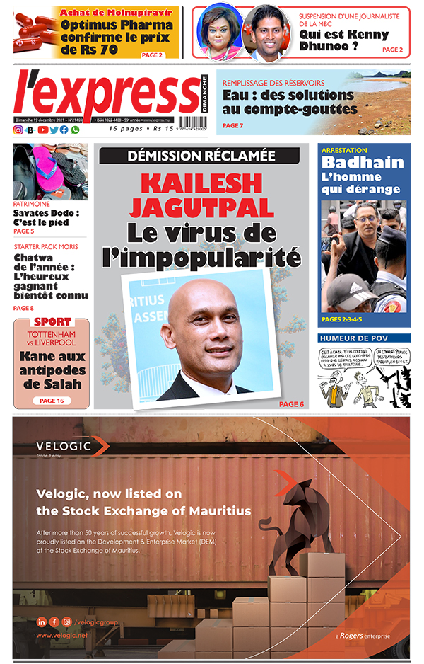 En une: Achat de Molnupiravir: Optimus Pharma confirme le prix de Rs 70 ; Autre titre: Kailesh Jagutpal: le virus de l’impopularité