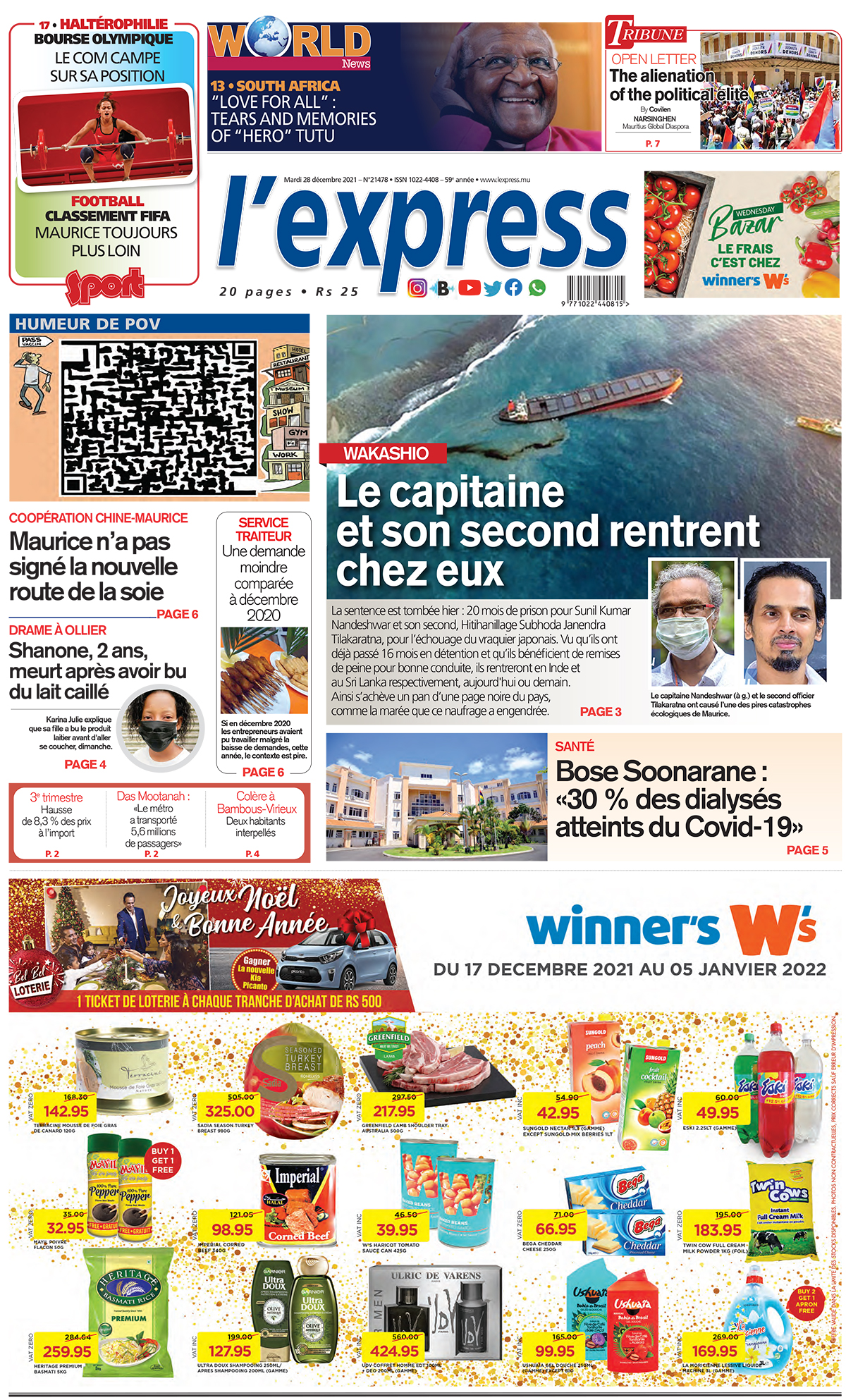 Les grands titres de l'express de ce mardi 28 décembre 2021