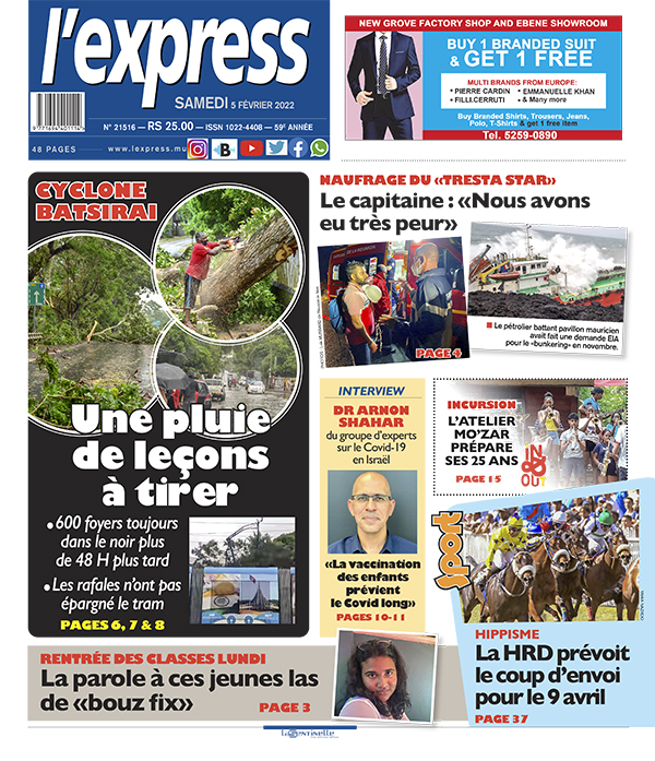 En une de l'express: Cyclone Batsirai: une pluie de leçons à tirer ; Autre titre: Rentrée des classes lundi: la parole à ces jeunes las de «bouz fix»