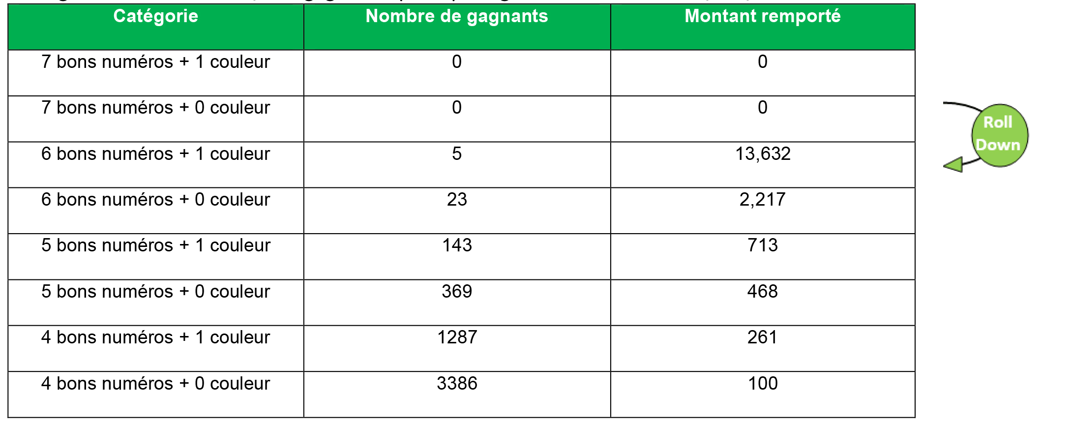 La combinaison gagnante de ce tirage du 11 février 2022 est : 02-20-21-23-24-25-28 et la couleur bleue.