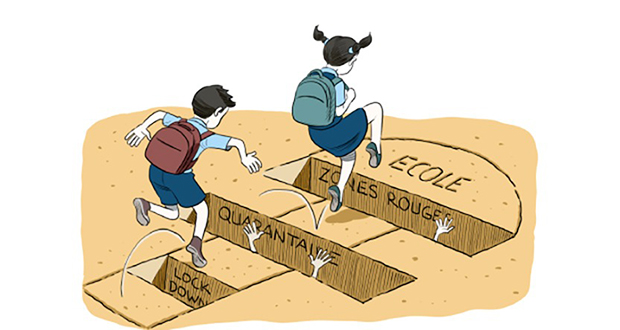 Subséquemment, la rentrée en présentiel depuis le 7 février loge-t-elle tous les apprenants de tous niveaux à la même enseigne ? Puisque tous les éléments sont dans la même classe, c’est l’enseignant qui doit diviser son groupe. «Il peut dispenser un devoir à l’ensemble des jeunes ou un travail avancé aux plus rapides et accorder plus de temps à d’autres qui n’ont pas le même niveau», explique-t-il. Un véritable jonglage incombant aux éducateurs. Car ce retard d’année scolaire ne les épargne pas non plus. «Ils doivent toujours travailler dans un cadre pandémique où les enfants sont traumatisés. Cela requiert qu’ils taillent leurs stratégies d’apprentissage sur mesure», avance le psychologue clinicien.