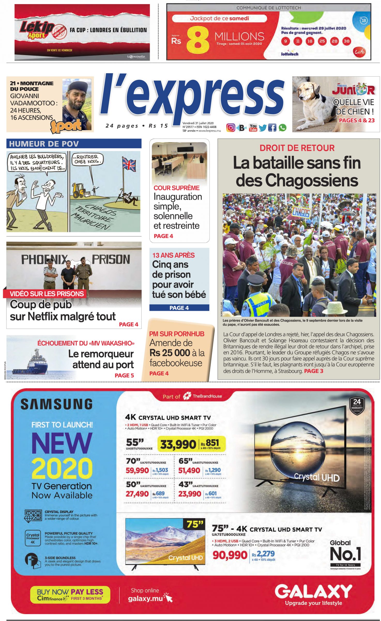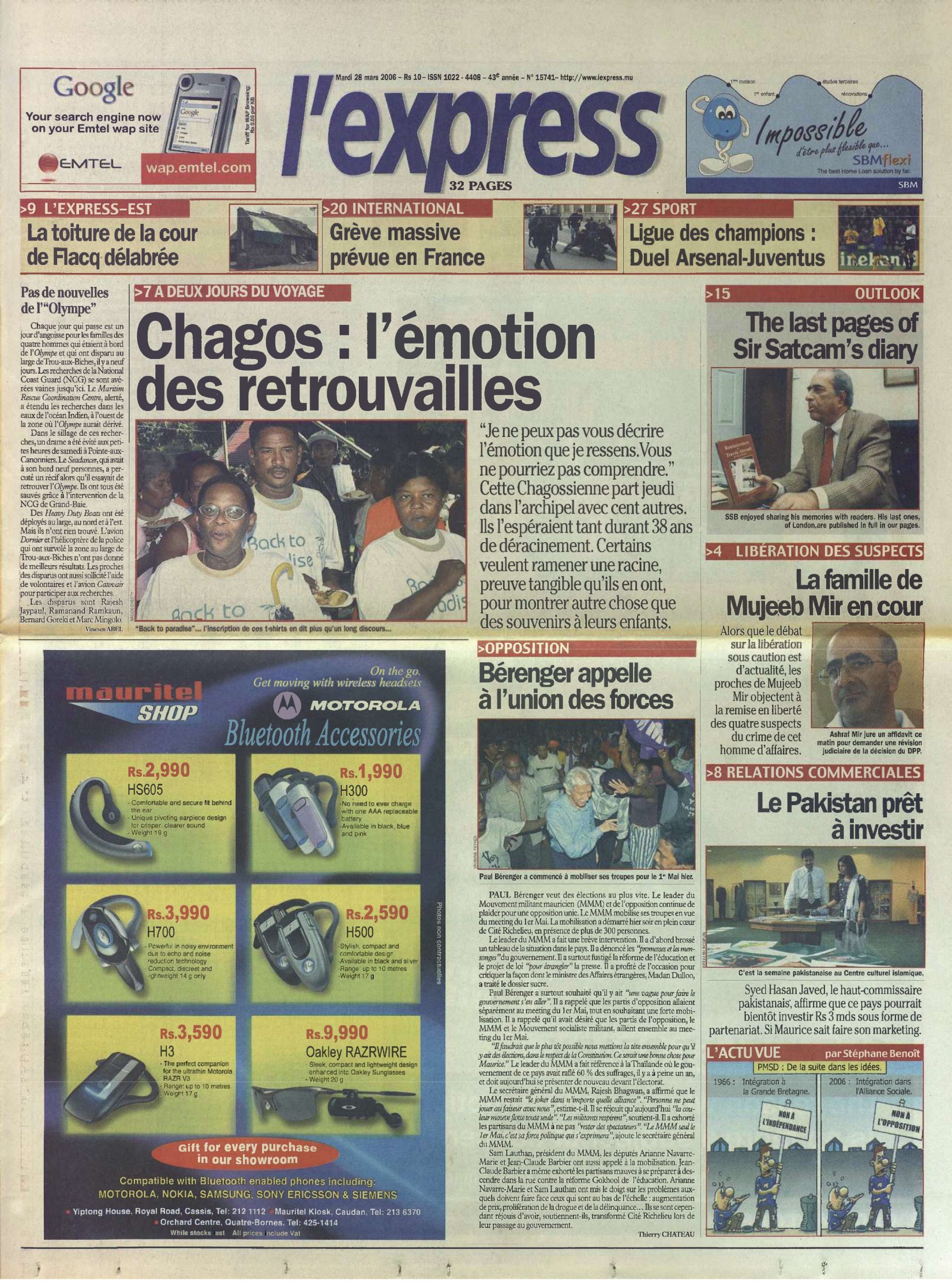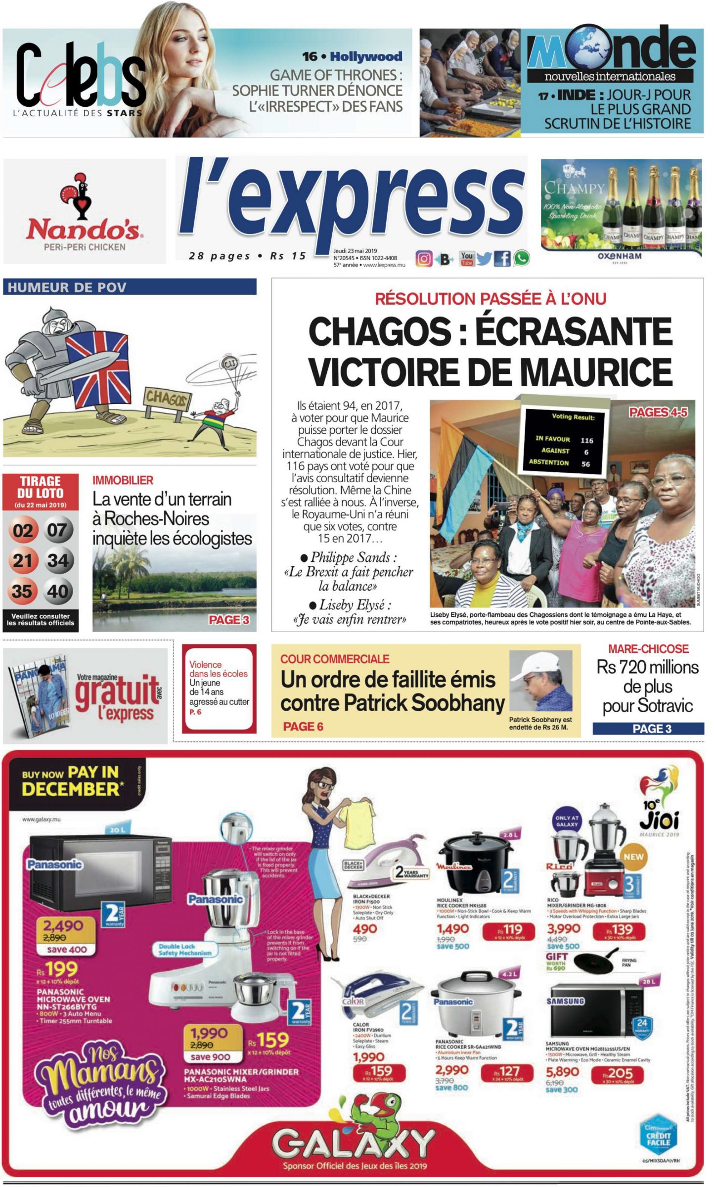 Et en bonus, quelques autres Unes où figurent le combat des Chagossiens.
