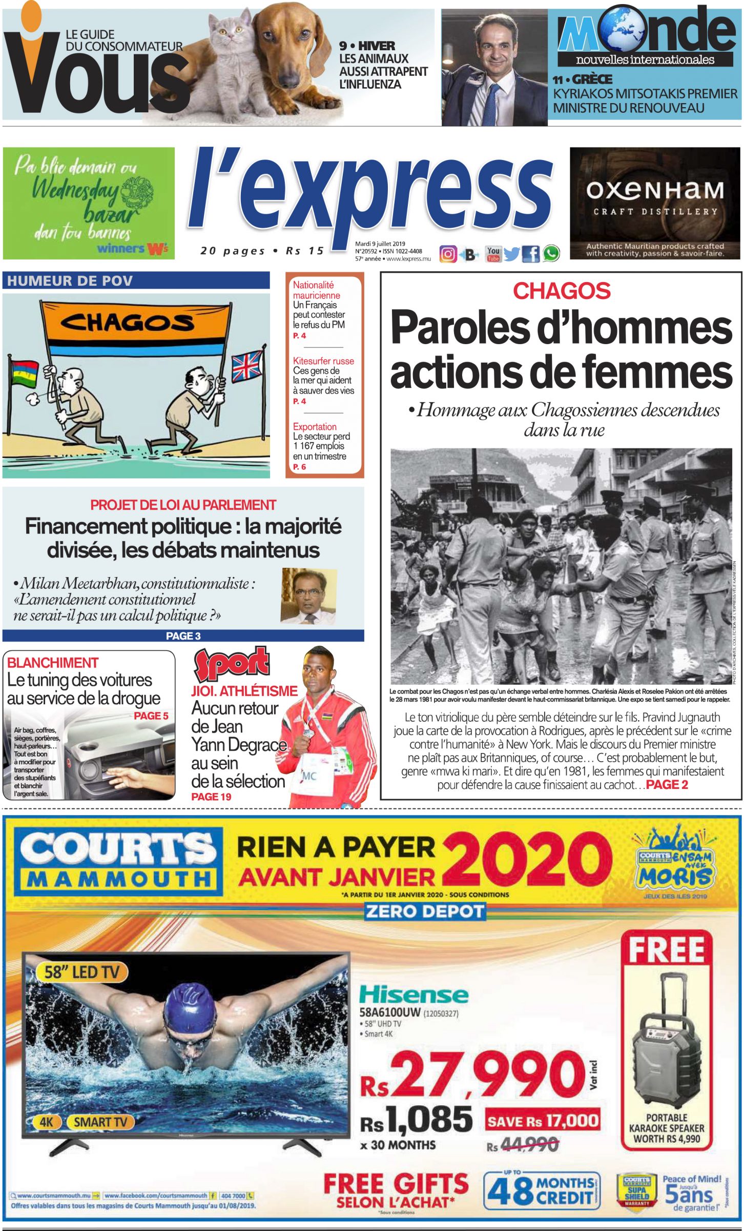 Il n’y a pas de débat. Le Premier ministre aurait dû se taire au lieu de prétendre que la presse mauricienne ne couvre pas – en Une – le voyage «scientifique» aux Chagos. L’on s’étonne que Pravind Jugnauth soit à ce point mal informé et coupé du contenu de la presse d’autant qu’il a cru bien faire de s’entourer de deux anciens rédacteurs en chef qui viennent de surcroît de notre groupe de presse (qu’il a tenté en vain d’étrangler). Que font-ils s’ils ne peuvent pas lire la presse et en faire des resumés, à tour de rôle, des ‘First Page News’ pour le PM ? L’un ferait surtout des discours pour les occasions socioculturelles et ne répond plus depuis belle lurette aux appels des journalistes, alors que le second suit Renganaden Padayachy comme son ombre et organise des interviews complaisantes pour celui-ci et sa clique. Et c’est comme cela que le PM se fait passer pour un comique en tentant de faire la leçon à la presse. Alors qu’une simple revue de presse par Meetarbhan ou Arouff aurait suffit pour ne pas pondre des bêtises historiques.