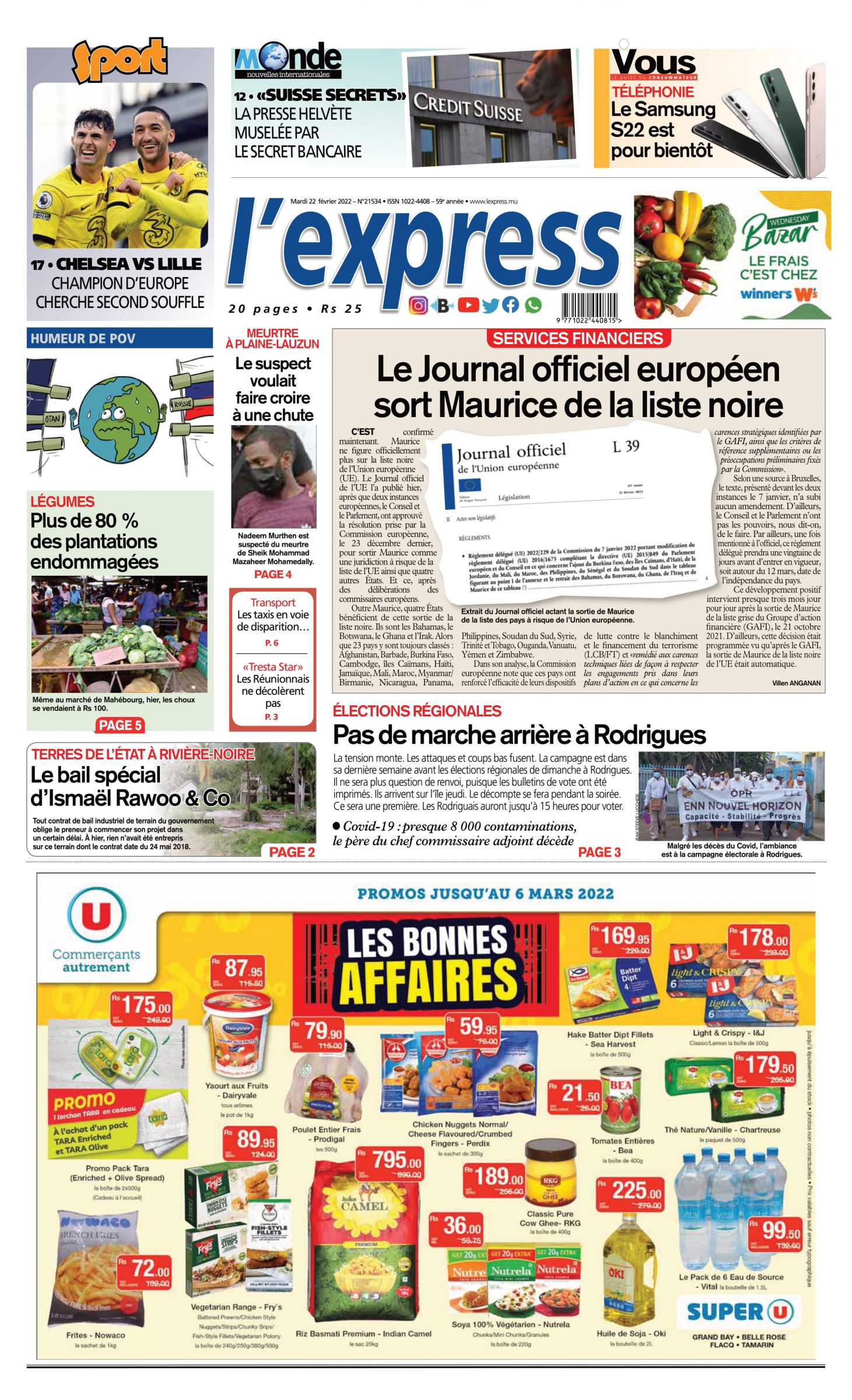 En une de l'express : Le Journal officiel européen sort Maurice de la liste noire; Autre titreÉlections régionales: pas de marche arrière à Rodrigues