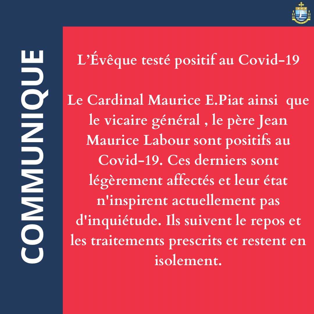 Le communiqué a été émis en ce vendredi 25 février. Le cardinal Maurice Piat ainsi que le Père Jean Maurice Labour ont été testés positifs au Covid-19. Leur état de santé n’inspire pas d’inquiétude pour le moment, précise ledit communiqué. Ils sont en auto-isolement.