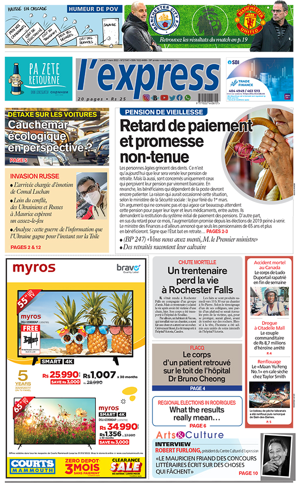 Les grands titres de l'express de ce lundi 7 mars 2022