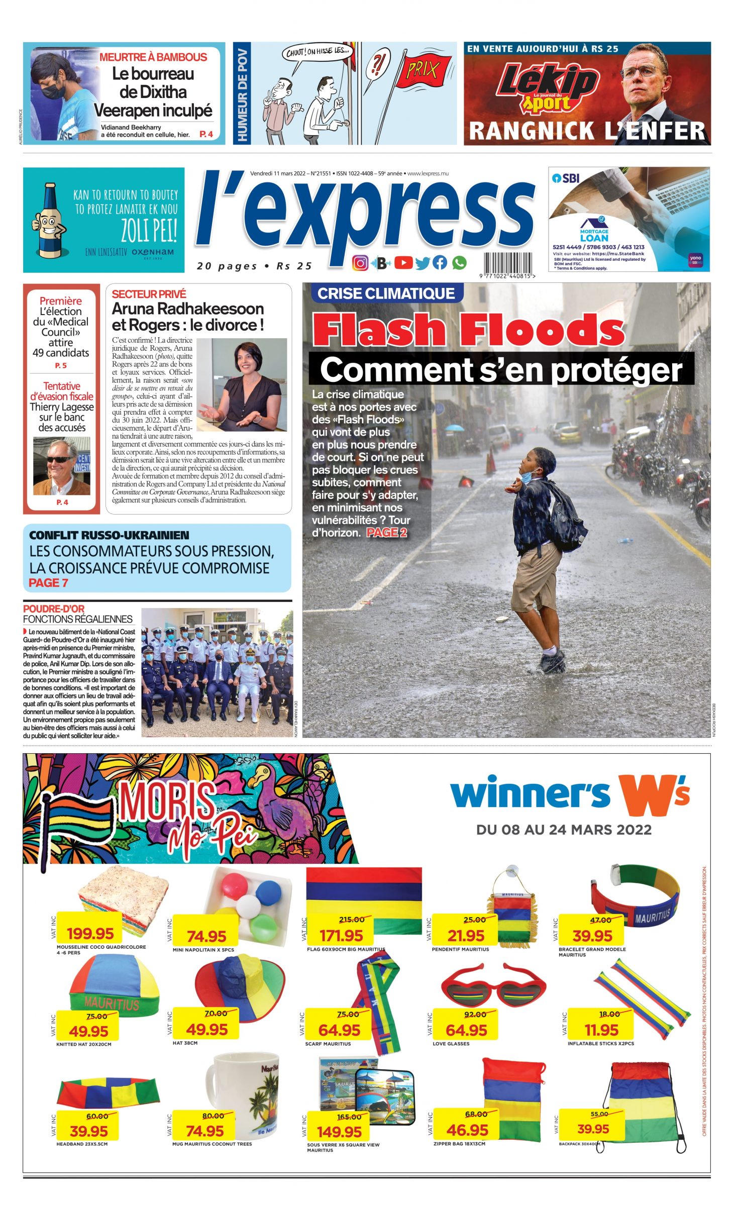 En une de l'express; Flash Floods Comment s’en protéger; Autre titre; L’élection du «Medical Council» attire 49 candidats