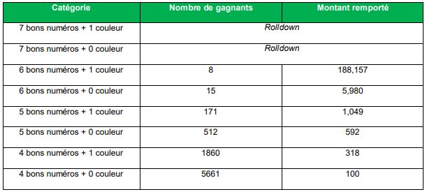 La combinaison gagnante de ce tirage du 22 avril 2022 est : 03-06-08-12-23-26-27 et la couleur jaune