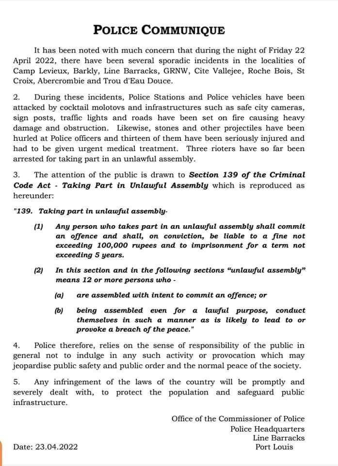 Suivant le mouvement populaire qui a eu lieu le vendredi 22 avril, la police a émis un communiqué pour mettre en garde les éventuels manifestants.