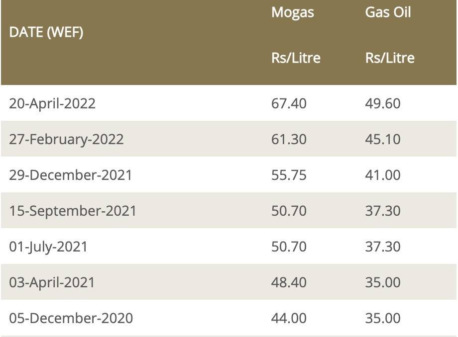 En quatre mois (décembre 2021 à avril 2022), le prix du litre d’essence a augmenté de Rs 16.70 (de Rs 50.70 à Rs 67.40) et celui du diesel est passé de Rs 37.30 à Rs 49.60, soit une hausse de (Rs 12.30).