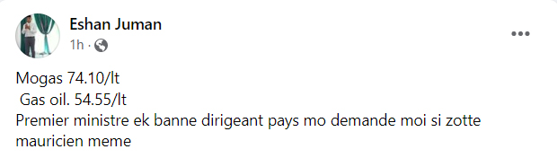 En effet, en début de soirée, une hyperlink a été créée sur le site web de la STC pour de nouveaux prix des carburants applicables demain. Initialement le lien avait renvoyé à une erreur «404 not found» avant d’être totalement enlevé. Parallèlement, le député de l’opposition Eshan Juman a annoncé sur sa page Facebook ce qui seraient, les nouveaux prix à la pompe, à partir de demain : Rs 74.10 pour le litre d’essence et Rs 54.55 pour le litre de diesel. On attend une confirmation de la State Trading Corporation.