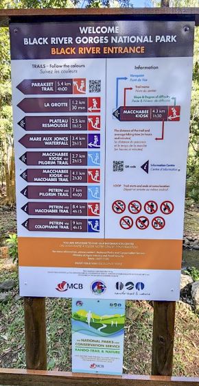 Un de ces panneaux d’orientation a été dévoilé au Centre des Visiteurs de Rivière-Noire lors d’une cérémonie officielle organisée samedi dernier au matin. Dans le cadre de la phase I de ce projet conjoint, les NPCS et RTN ont marqué les sentiers populaires qui relient Pétrin, de la Plaine-Champagne, au centre d’accueil des visiteurs des Basses-Gorges, à Rivière-Noire. Il existe plusieurs itinéraires pour relier les deux centres d’accueil, distants d’environ 10 kilomètres, et tous ces chemins alternatifs ont été balisés.