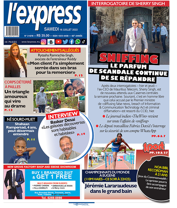 Après deux interrogatoires – hier et jeudi – l’ex-CEO de Mauritius Telecom, Sherry Singh, est de nouveau attendu aux Casernes centrales la semaine prochaine. Souriant, c’est en homme libre que celui accusé par le Premier ministre de «diffusing false news, breach of Information & Communication Technology Act et criminal diffamation» est ressorti du CCID, hier.