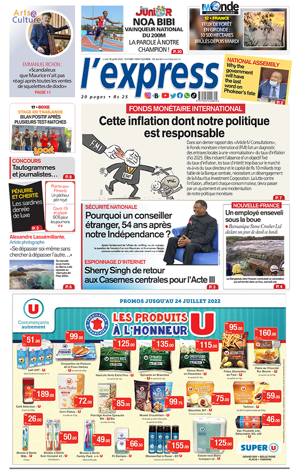 En une de l'express: Fonds monétaire international: cette inflation dont notre politique est responsable ; Autre titre: Sécurité nationale: pourquoi un conseiller étranger, 54 ans après notre Indépendance ?