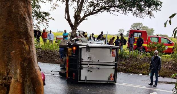 Un accident s’est produit à 17 h 15 à St.Aubin en ce lundi 1er août. Un camion a dérapé sur la route glissante, pour finir sur le flanc. Des blessés sont à déplorer.