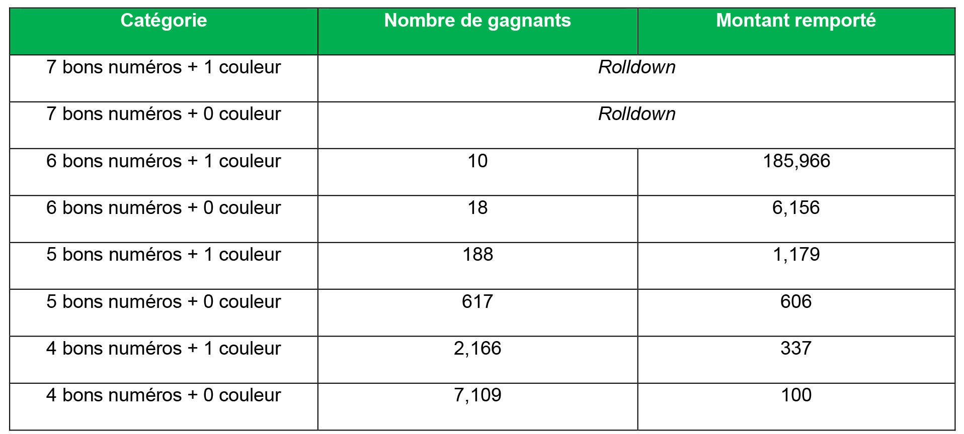 Loterie Vert: 10 gagnants