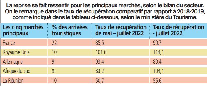 «Si les hôtels quatre et cinq étoiles sont remplis, les petits hôtels ont toujours des difficultés. Ces derniers dépendent beaucoup des touristes réunionnais», a soutenu Steven Obeegadoo, ministre du Tourisme, dans son bilan sur le secteur touristique le 18 août. Toutefois, les petits business en difficulté ne sont pas seulement dans le domaine de l’hébergement. D’autres secteurs sont aussi concernés malgré le taux de récupération de mai à juillet 2022.