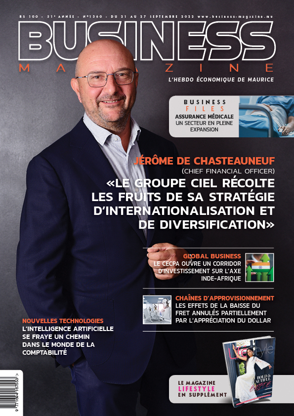Grâce à un portefeuille d’activités diversifié et une solide présence dans des zones géographiques à fort potentiel de croissance comme l’Asie du Sud-Est et l’Afrique, le Groupe CIEL a pu limiter les conséquences de la crise sur ses opérations. D’ailleurs, dans son dernier bilan pour les neuf mois se terminant fin mars 2022, son chiffre d’affaires s’élevait à Rs 20,36 milliards (+51 % par rapport à la période correspondante en 2021). La publication de ses résultats annuels la semaine prochaine devrait confirmer cette bonne dynamique. Son Chief Financial Officer, Jérôme de Chasteauneuf, lève un pan de voile sur les stratégies du groupe. C’est en une de Business Magazine ce mercredi 21 septembre 2022, un numéro accompagné du mensuel Lifestyle et disponible aux points de vente habituels et à consulter en version numérique dans l’espace Kiosk de La Sentinelle : https://kiosk.lasentinelle.mu/