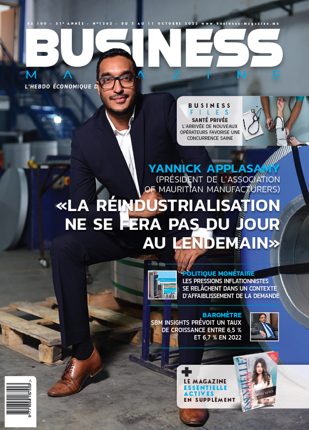 Les crises successives qui frappent le monde depuis ces deux dernières années amènent une prise de conscience par rapport à la nécessité de dynamiser la production locale, observe le président de l’Association of Mauritian Manufacturers, Yannick Applasamy. Si un cap a été définitivement franchi, on doit se rendre compte que l’on n’est pas près de la réindustrialisation. Cet ingénieur de formation évoque également l’avènement de l’industrie 4.0. C’est ce que vous retrouverez en couverture de Business Magazine ce mercredi 5 octobre 2022, un numéro accompagné du magazine Essentielle Actives et disponible aux points de vente habituels et à consulter en version numérique dans l’espace Kiosk de La Sentinelle : https://kiosk.lasentinelle.mu/