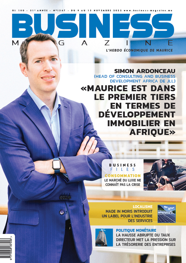 De passage à Maurice dans le cadre d’une conférence sur l’immobilier résidentiel de luxe qui se tient ce mercredi, Simon Ardonceau, le Head of Consulting and Business Development Africa de JLL, met en relief le positionnement du pays face à la concurrence internationale et évoque les nombreux défis que devront relever les promoteurs à court terme s’ils ne veulent pas se laisser distancer. Cet entretien fait la couverture de Business Magazine ce mercredi 9 novembre 2022, un numéro disponible aux points de vente habituels et à consulter en version numérique dans l’espace Kiosk de La Sentinelle : https://kiosk.lasentinelle.mu/