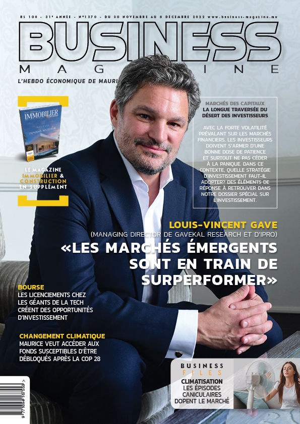 S’il est vrai que les marchés financiers demeurent fortement volatils, il y a toutefois des opportunités notamment sur les marchés émergents, observe Louis-Vincent Gave, Managing Director de Gavekal Research, société internationale de recherche macroéconomique et financière et actionnaire majoritaire d’IPRO depuis fin septembre. Celui-ci évoque, par ailleurs, le processus de démondialisation associé aux flux financiers. Cet entretien fait la couverture de Business Magazine ce mercredi 30 novembre 2022, un numéro accompagné du magazine Immobilier & Construction et disponible aux points de vente habituels. Il peut aussi être consulté en version numérique dans l’espace Kiosk de La Sentinelle : https://kiosk.lasentinelle.mu/