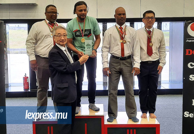 Tout d’abord, signalons la présence appréciable de l’Ambassadeur du Japon, Shuichiro Kawaguchi, qui ne manque pas d’assister aux compétitions organisées en l’honneur de la fonction qu’il occupe. Notons aussi que la JKA Mauritius a bénéficié de l’encadrement de nombre d’officiels qui agissaient sous l’œil avisé du Shihan Koichiro Okuma, 7e Dan, de la ‘Japan Karate Association (JKA)’ de Tokyo. Pour rappel, ce dernier s’était rendu à Maurice pour - pendant 10 jours, du 16 au 26 décembre, hormis le 25 décembre – se charger principalement de s’occuper de la progression des pratiquants de karaté de la JKA Mauritius et superviser des passages de grade.