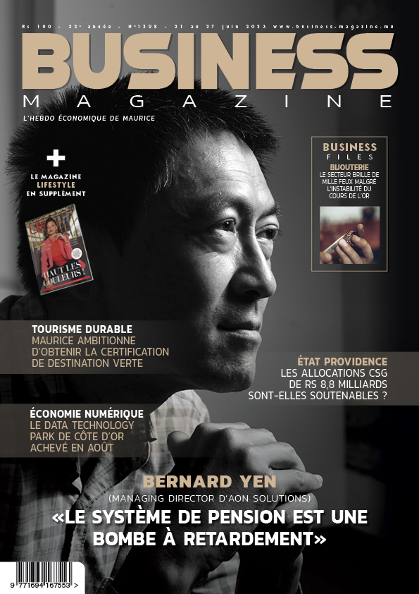 Le Budget 2023-2024 fait une provision additionnelle pour la Basic Retirement Pension. Cela se traduira par une hausse des dépenses entre Rs 3,4 milliards et Rs 4 milliards par an au cours des dix prochaines années. D’un autre côté, les «CSG Allowances» coûteront désormais un montant supplémentaire stupéfiant de Rs 4 milliards par an à partir de la prochaine année financière. De l’avis de Bernard Yen, actuaire et Managing Director d’Aon Solutions, ce sera difficile pour l’État de soutenir ce coût à moins d’augmenter les impôts. Cet entretien est en couverture de Business Magazine ce mercredi 21 juin 2023, un numéro accompagné du magazine Lifestyle et à retrouver aux points de vente habituels ou à être consulté en version numérique dans l’espace Kiosk de La Sentinelle : https://kiosk.lasentinelle.mu/