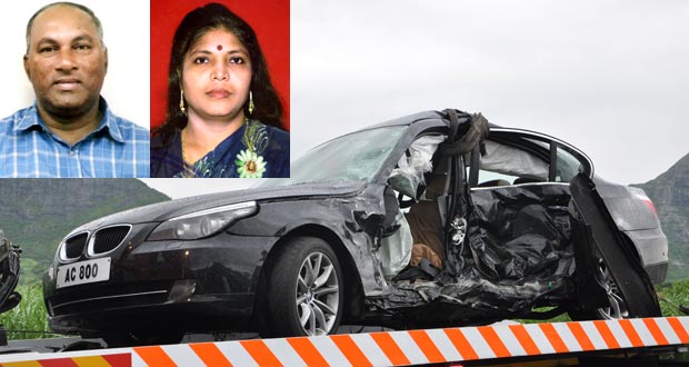 L’accident s’est produit à proximité du rond-point de Beaux-Songes. Il semblerait que Rishi Ramchurn, qui est Tax Adviser dans une entreprise privée, était en train de doubler un autre véhicule lorsqu’il est entré en collision avec le 2x4 qui arrivait en sens inverse. L’impact a été d’une rare violence du côté gauche de la BMW, dont la carrosserie a été enfoncée. Le couple, qui était installé de ce côté de la voiture, a été tué sur le coup.