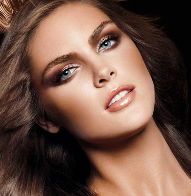 Le teint est diaphane et le regard magnétique. Ce soir vous jouez l’intensité du regard, le style, «Rien que pour vos yeux». Osez les teintes métallisées. Généralement, on conseille les couleurs «froides», bleu ou vert pour les yeux foncés. Et les nuances chaudes, or, prune, pour les yeux clairs. Mais en réalité le soir de fête, la règle du jeu est différente. Osez. L’essentiel est de tapisser la paupière mobile d’une nuance bleue ou or, les teintes phare de la fête. Allezy franco : soulignez la paupière, débordez sur l’arcade sourcilière. Au ras des cils tracez aussi un trait d’eye-liner, un peu épais. Pour le mascara, jouez la sobriété du noir. Mais avec un effet télescopique évidemment, allongez, allongez… Misez par contre sur les sourcils, que vous avez pris soin d’épiler : n’oubliez pas que c’est eux qui définissent votre regard. Ensuite, équilibrez leur ligne, évitez le crayon mais préférez la poudre spéciale yeux qui unifie la couleur. Pour un effet : Belle jusqu’au bout des sourcils.