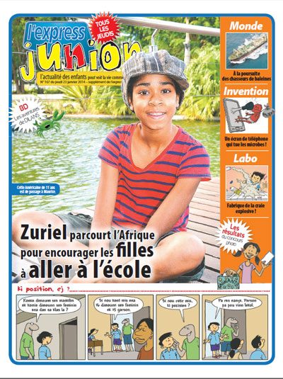 L’express junior est un supplément gratuit de l’express. C’est le seul journal mauricien pour enfants (8-13 ans). Tous les jeudis, c’est 8 pages en couleurs et des rubriques comme celles qu’on lit dans le journal des parents. Pour s’informer, comprendre… et grandir !