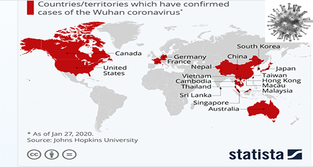 Cependant, il faut faire très attention, car à vendredi, il n’y avait que 9 cas confirmés en Australie, 3 au Canada, 6 aux USA et environ 9 800 en Chine, pays souche qui regroupait toutes les mortalités (213) jusqu’ici. Si cette mappe monde tentait plutôt de représenter ces chiffres en pourcentage de la population, le rouge vif disparaîtrait de la mappe ! Sauf peut-être pour un tout petit point à Wuhan ! Et on aurait alors, sans aucun doute, une meilleure idée des chances de contracter ce virus en visitant ces pays ! De plus, le taux de mortalité dû à ce virus est rapporté être de 3 % des cas identifiés, alors que l’épidémie de syndrome respiratoire aigu sévère (SRAS) en était à 10 % et que l’Ebola tue 50 % des humains infectés. Il faut en être conscient bien évidemment, mais aussi du fait qu’un virus dont les symptômes sont relativement peu sévères et dont la période d’incubation peut aller jusqu’à 14 jours va, toute proportion gardée, se diffuser plus largement. Comme l’influenza.