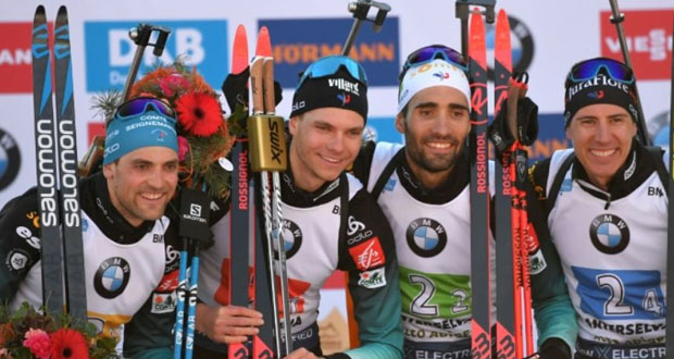 Biathlon: la France sacrée en relais masculin, 1er titre depuis 2001
