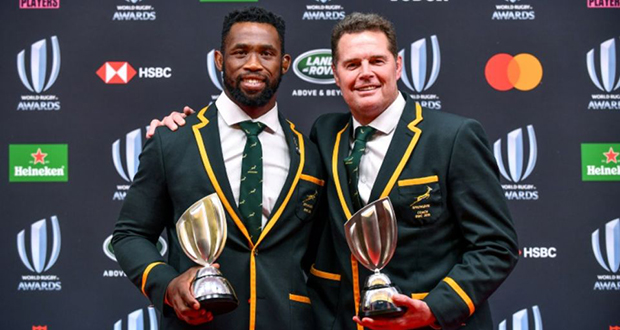 Les champions sud-africains Erasmus et Kolisi rentrent mardi au pays