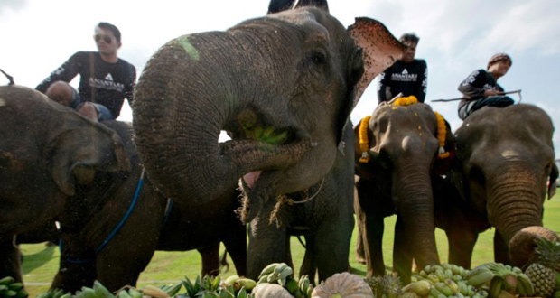 Au coeur de Bangkok, des éléphants joueurs de polo