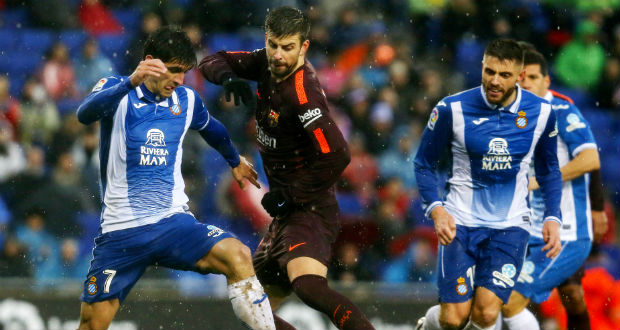 Espagne/22e journée: Piqué maintient le Barça à flot dans le derby (1-1)